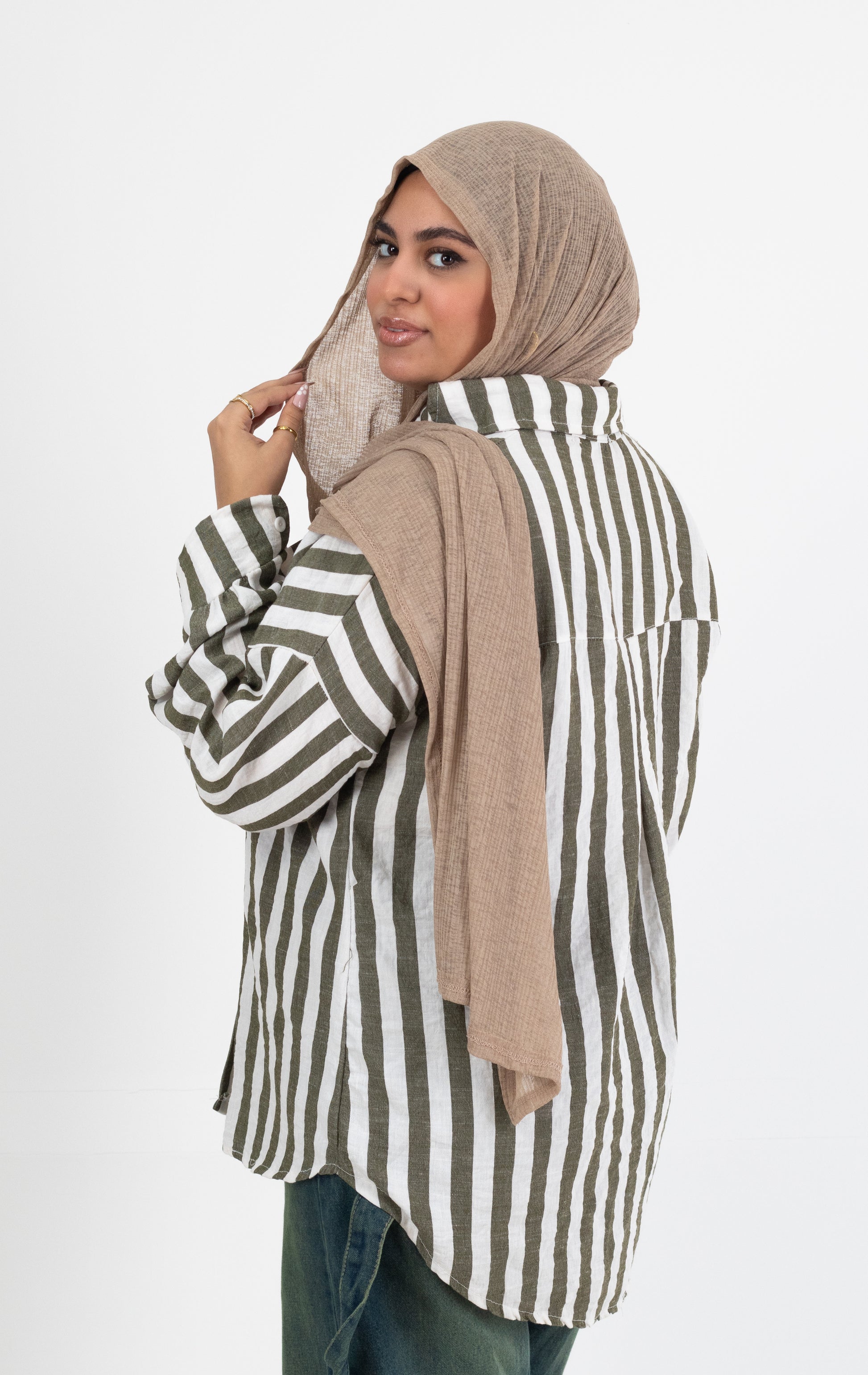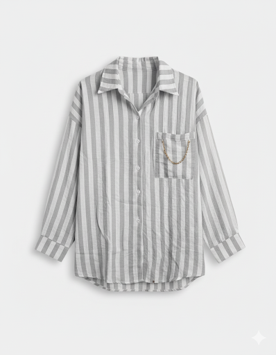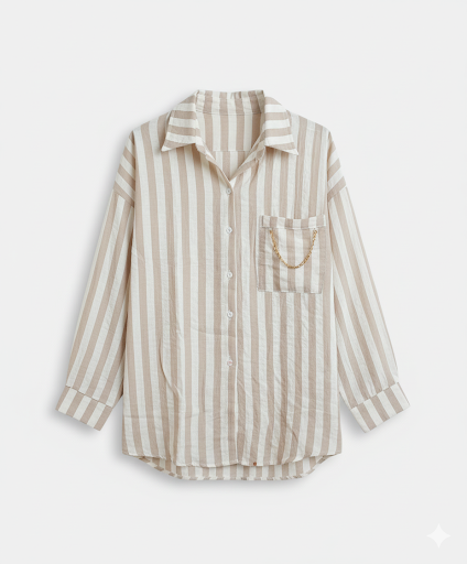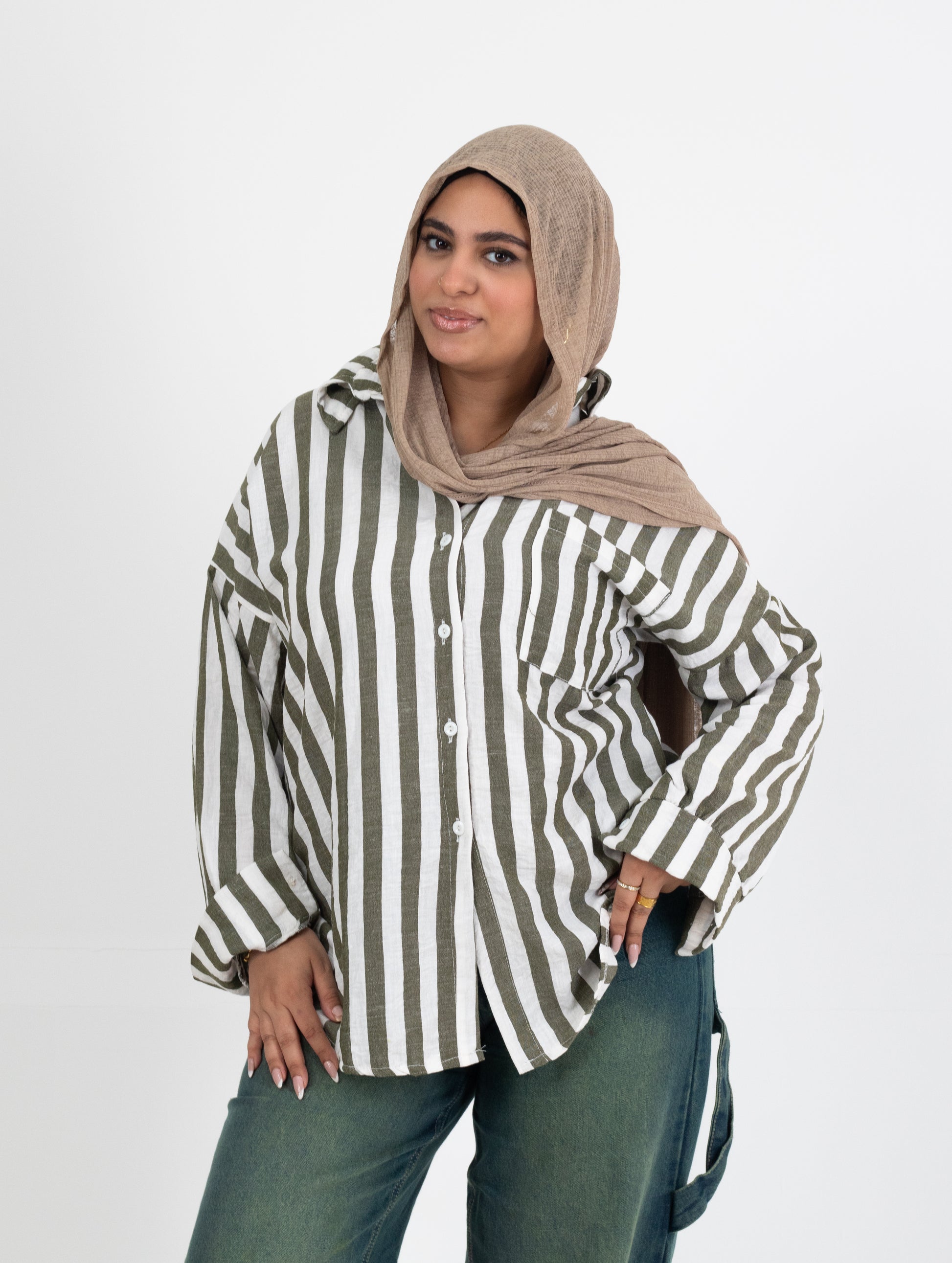 اضيفي لمسة من الأناقة الكاجوال مع شميز كتان مقلم أوفر سايز من NADINAZ.